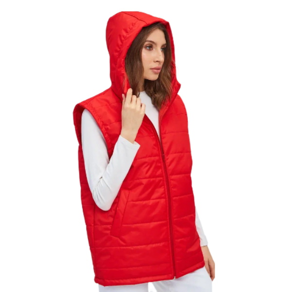 Жилет с капюшоном стежка красный