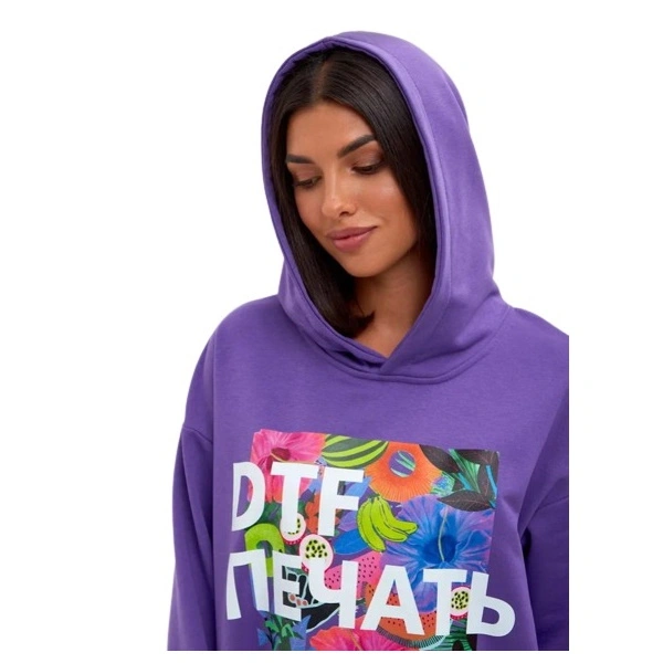 Печать на крое, позволяет делать сложное нанесение на толстовках, печать на мелких деталях, печать на рукаве.
